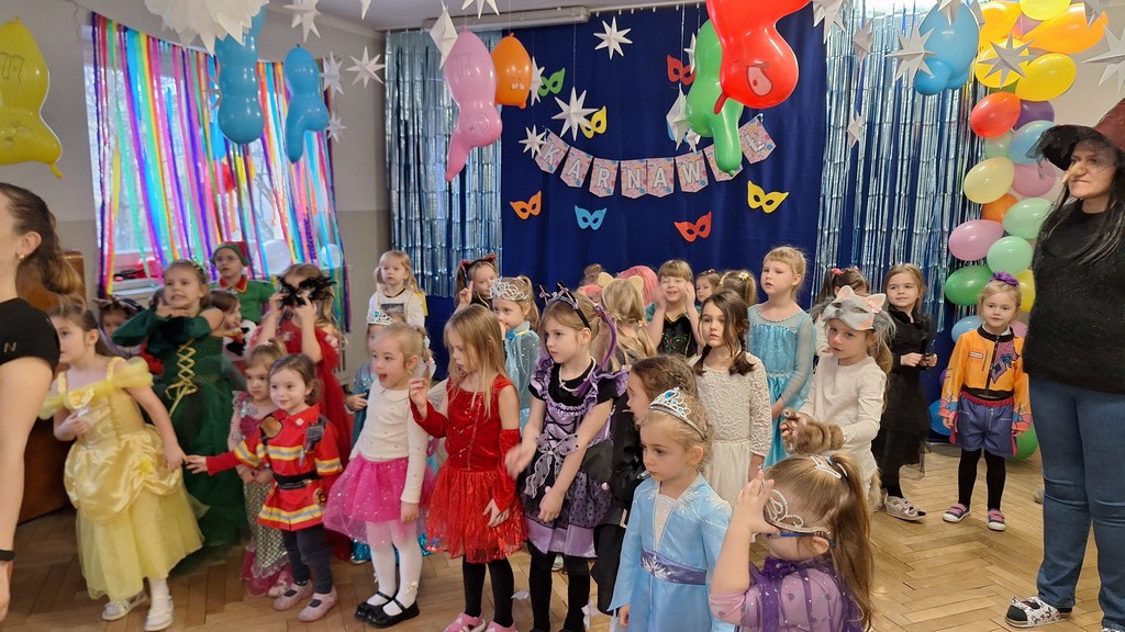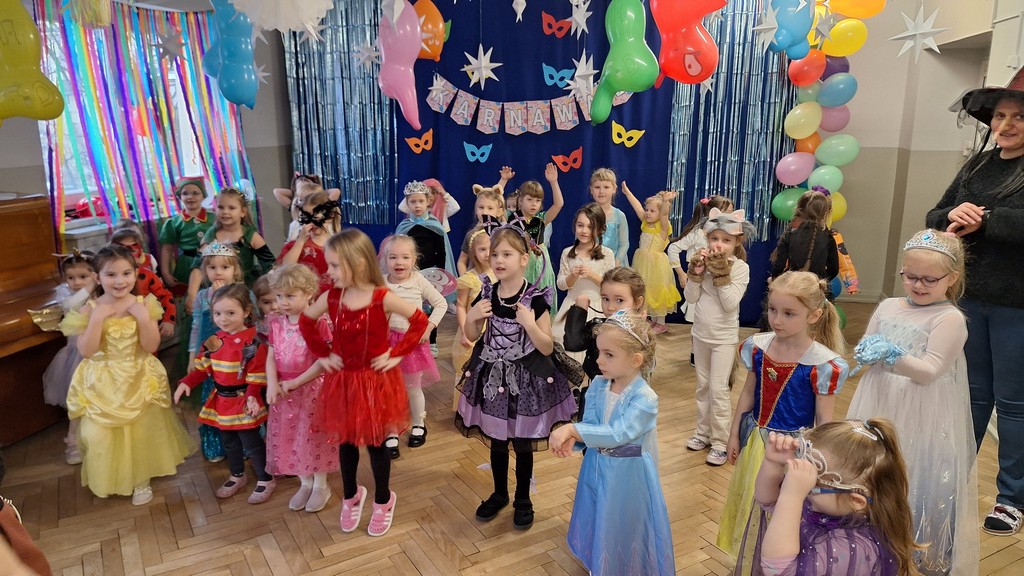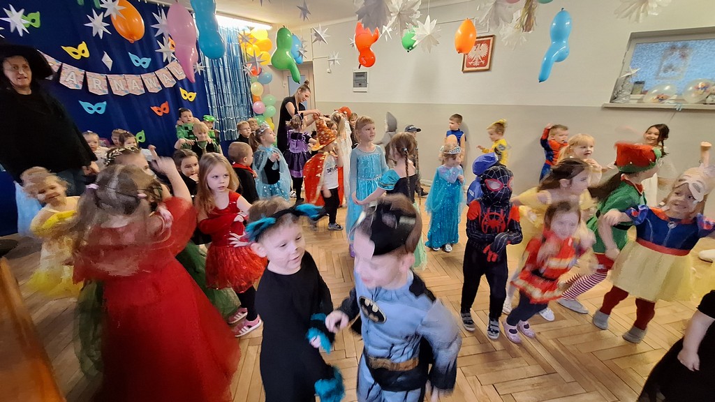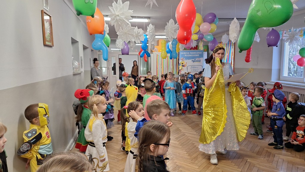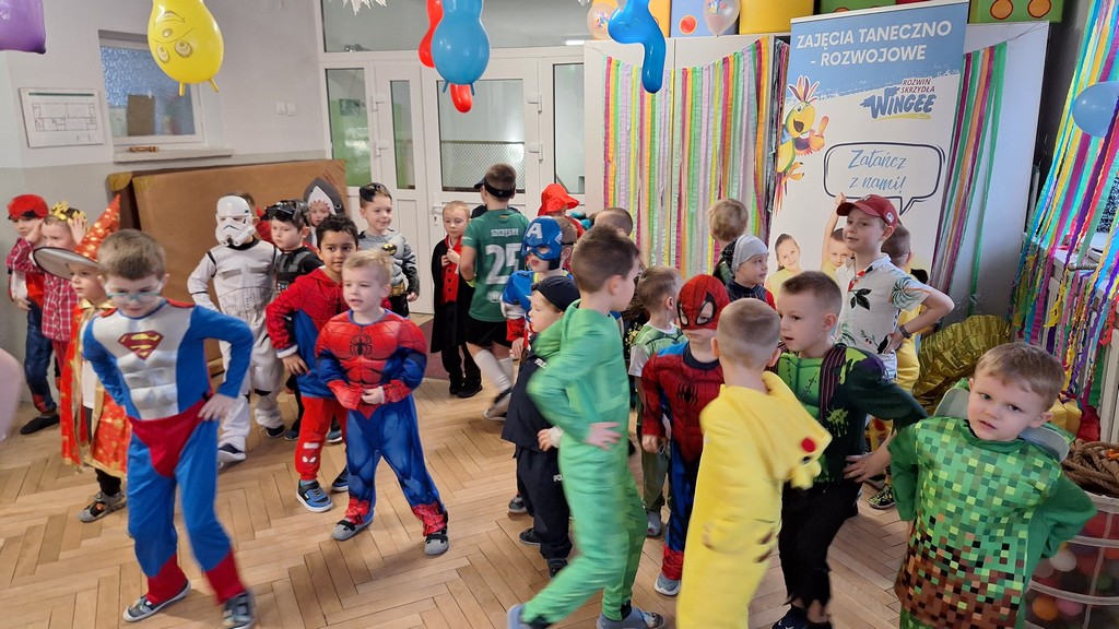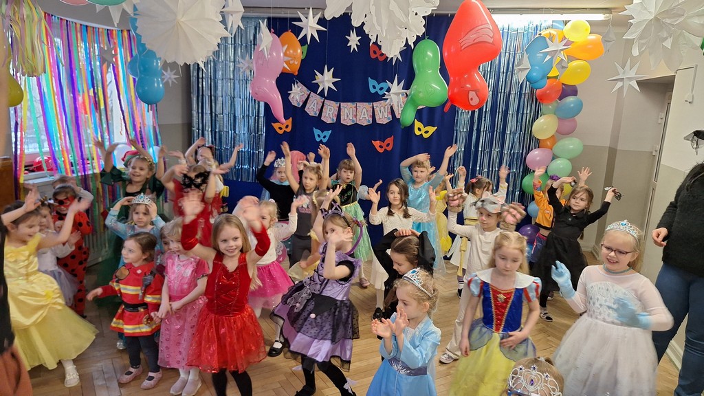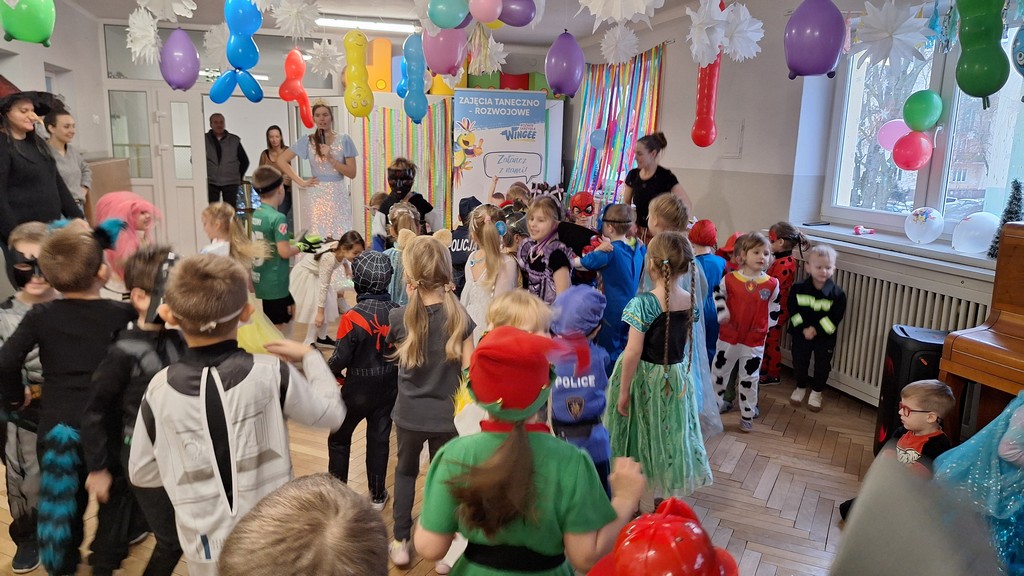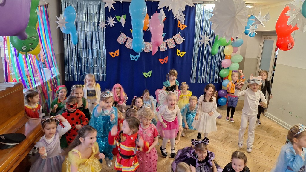 W tym roku w naszym przedszkolu 29 stycznia odbył się Bal Karnawałowy. Cała uroczystość poprowadzona była przez animatorów "Wingee" w formie zadań do wykonania. Były zadania taneczne w formie bitwy w której udział brały dwie drużyny - drużyna wszystkich chłopców i drużyna wszystkich dziewczynek. Były taneczne zwierzątka, opowieści taneczne i wiele wiele innych. Wszystkie przedszkolaki były ślicznie przebrane i fantastycznie się bawiły.