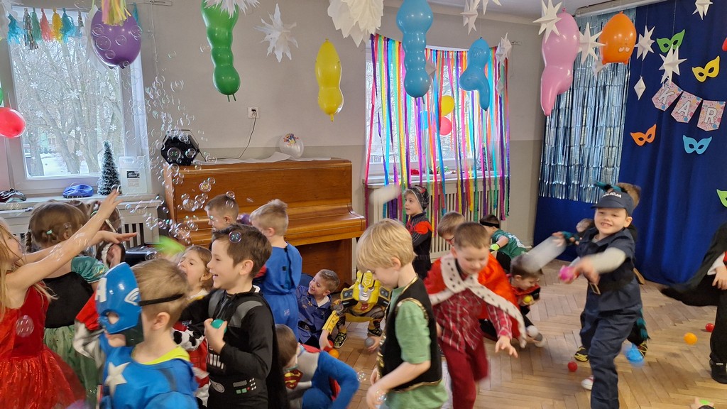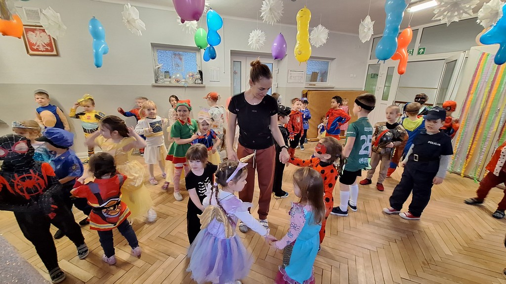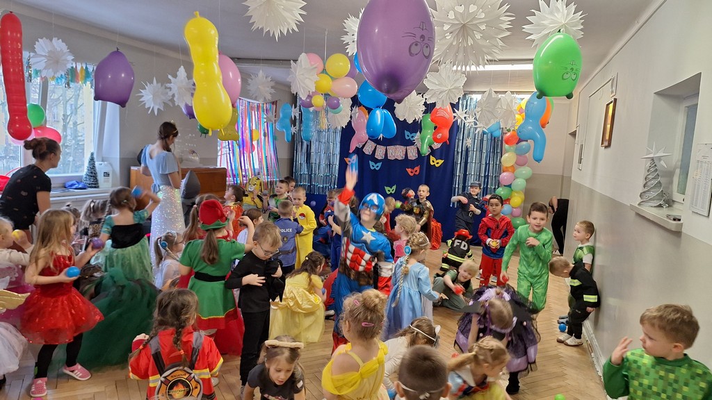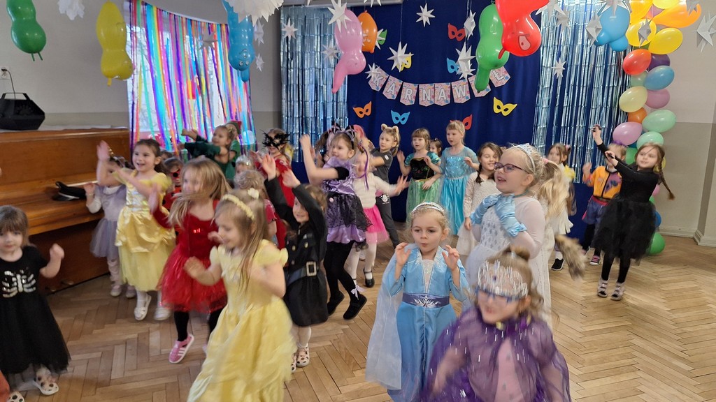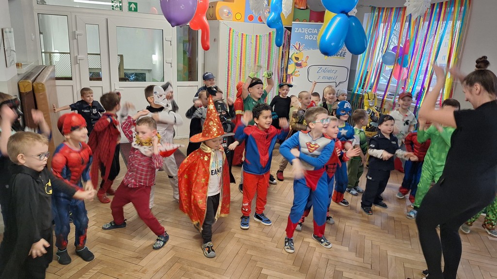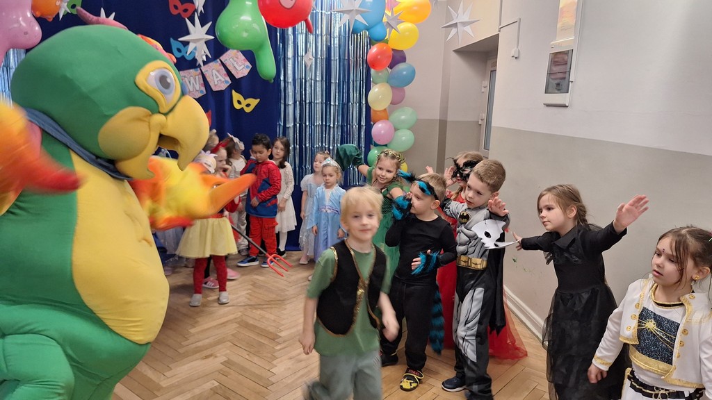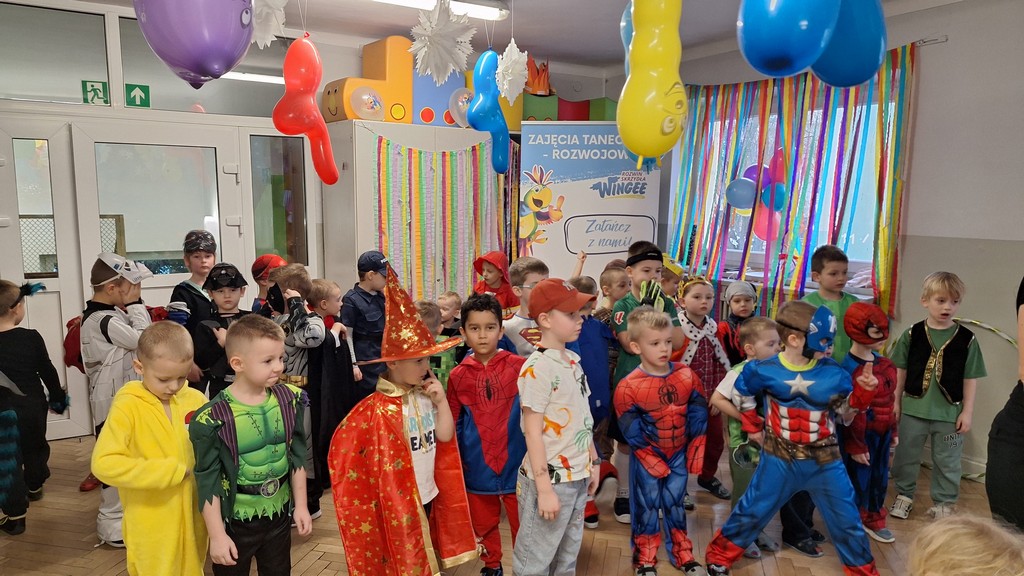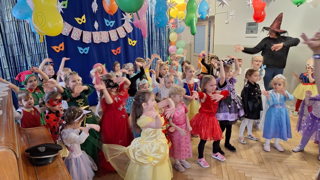 W tym roku w naszym przedszkolu 29 stycznia odbył się Bal Karnawałowy. Cała uroczystość poprowadzona była przez animatorów "Wingee" w formie zadań do wykonania. Były zadania taneczne w formie bitwy w której udział brały dwie drużyny - drużyna wszystkich chłopców i drużyna wszystkich dziewczynek. Były taneczne zwierzątka, opowieści taneczne i wiele wiele innych. Wszystkie przedszkolaki były ślicznie przebrane i fantastycznie się bawiły.