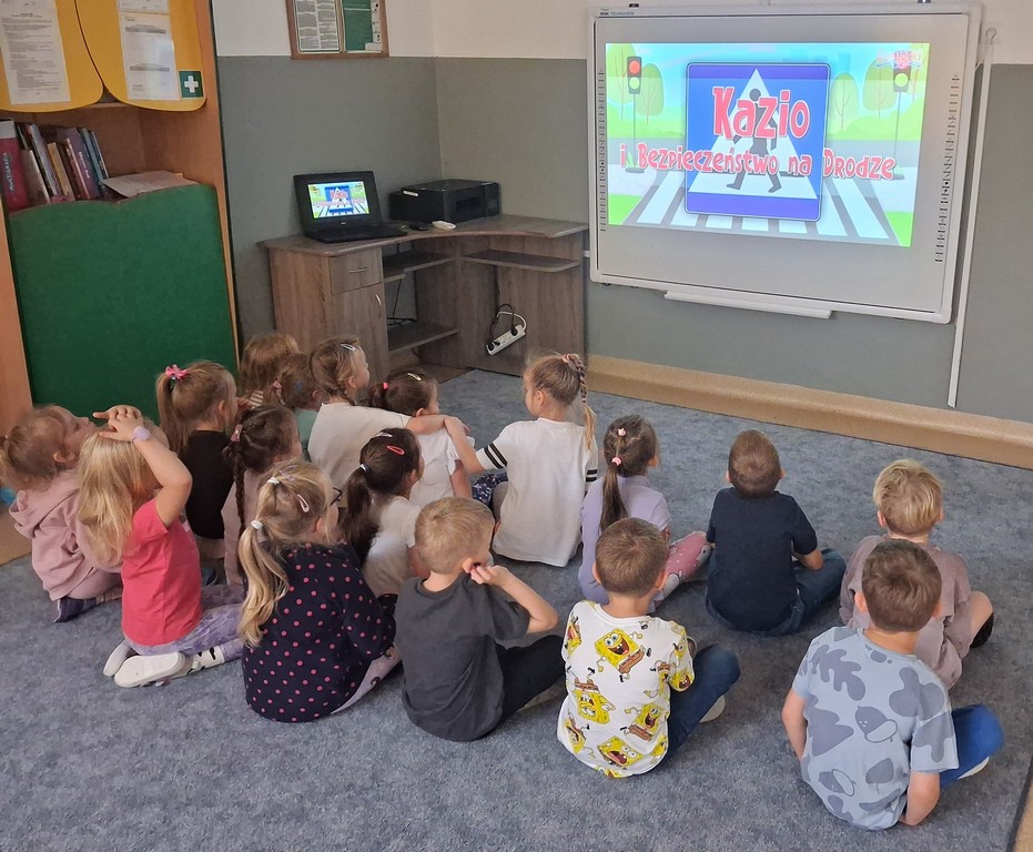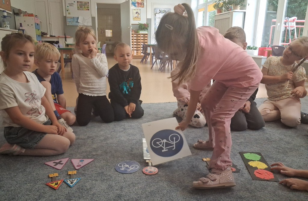 Podczas zajęć o bezpieczeństwie na drodze dzieci poznały zasady bezpiecznego poruszania się w ruchu pieszych, znaczenie sygnalizacji świetlnej i wybranych znaków drogowych, a także konieczność noszenia elementów odblaskowych.