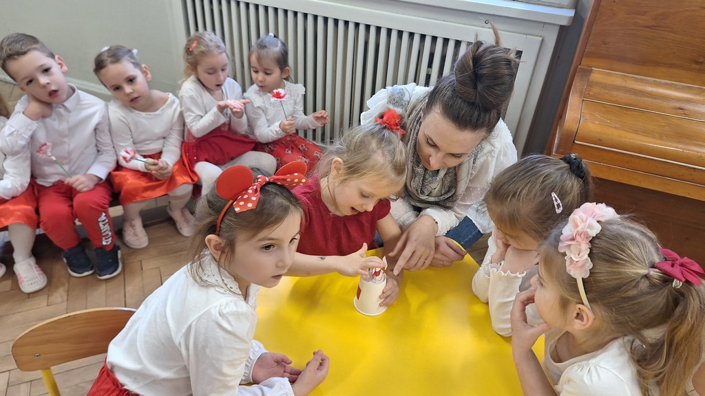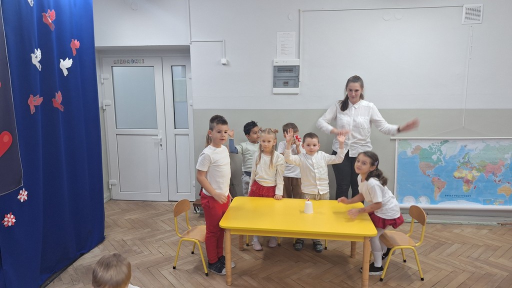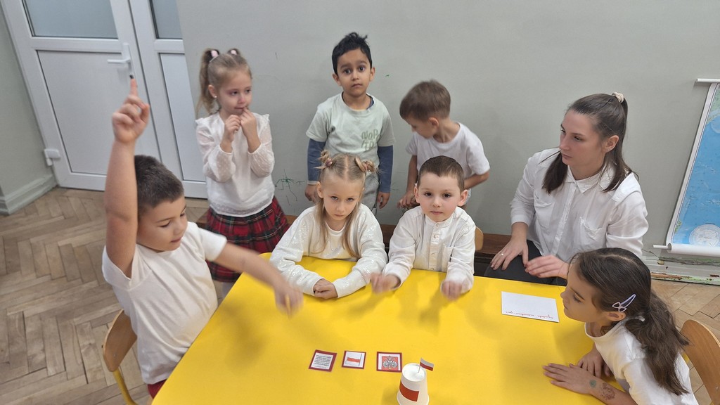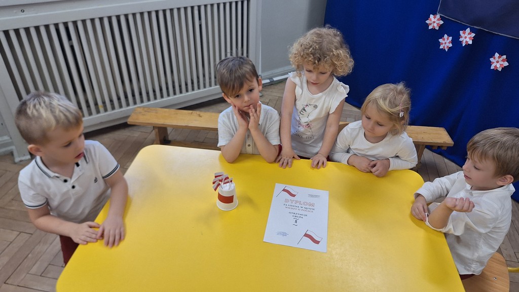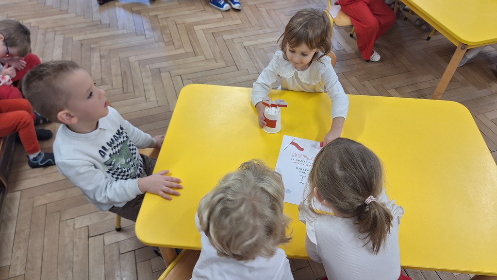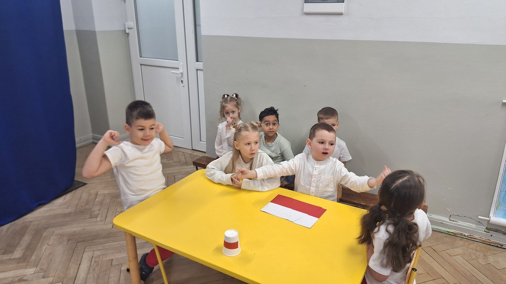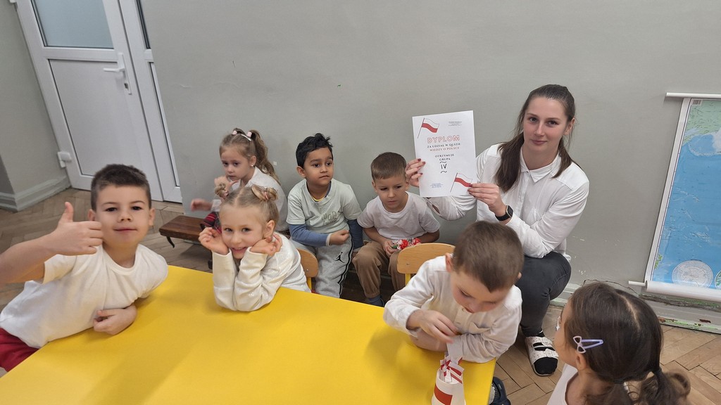 Wszystkich zebranych powitała pani Aleksandra zapraszając na program artystyczny w wykonaniu przedszkolaków. Dzieci w wierszach i piosenkach przytoczyły zarys historyczny odzyskania przez Polskę Niepodległości oraz oddały hołd Ojczyźnie . Ponadto nasze przedszkole wzięło udział w akcji organizowanej przez MEN ,,Szkoła do hymnu” podczas której o godzinie 11:11 wszyscy zgromadzeni odśpiewali Hymn Narodowy. Podsumowując zdobyte wiadomości i utrwalając wiedzę dzieci uczestniczyły w "Quizie wiedzy o Polsce", podczas którego wybrani reprezentanci z każdej grupy odpowiadali na pytania i wykonywali zadania dotyczące naszego kraju. Pozostałe dzieci podpowiadały na pytania dodatkowe, wspierały swoich kolegów i wykonywali zadania wspólne. Uroczystość ta z pewnością zapadnie wszystkim głęboko w pamięci. Dzień, który przeżyliśmy dumnie i z uśmiechem na twarzy, przyczyni się do kształtowania patriotycznych postaw naszych małych Polek i Polaków.
