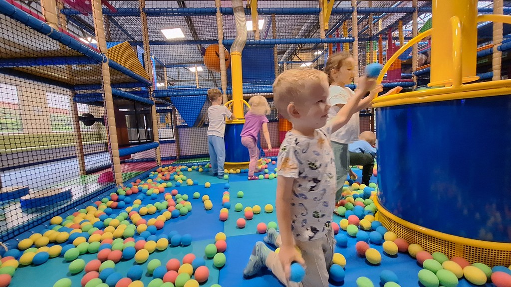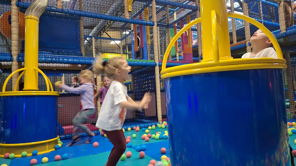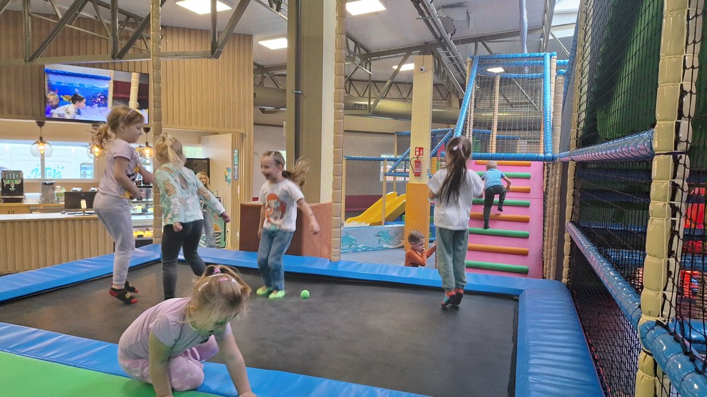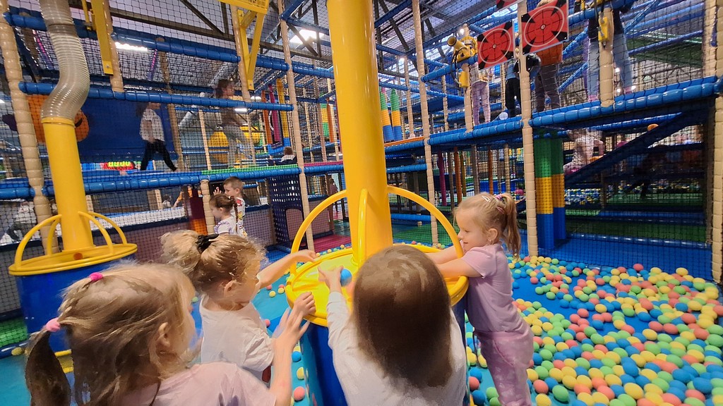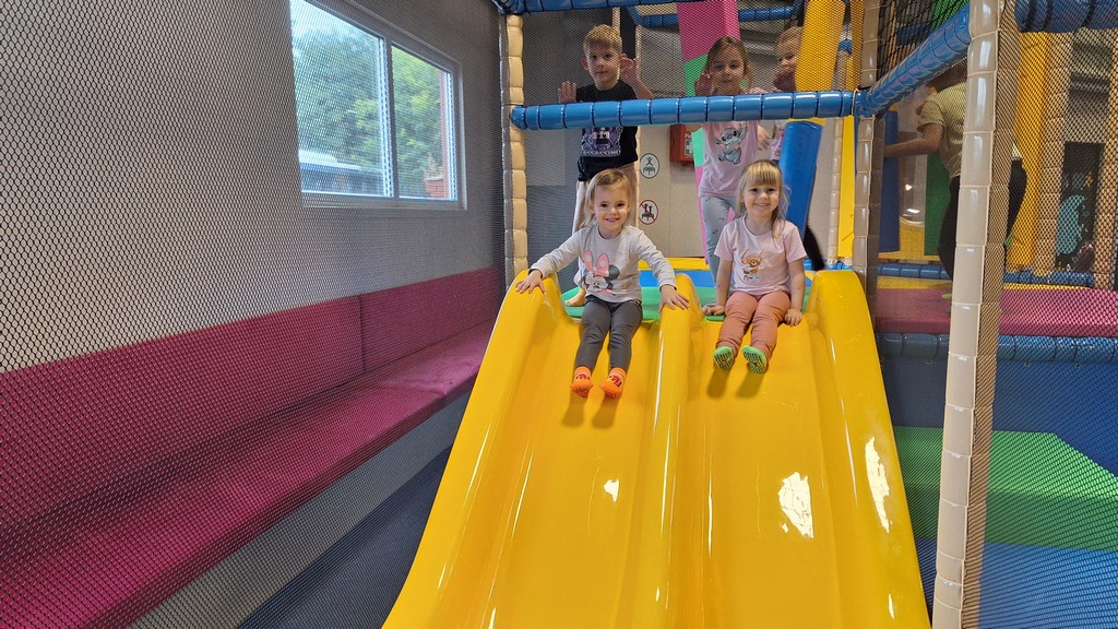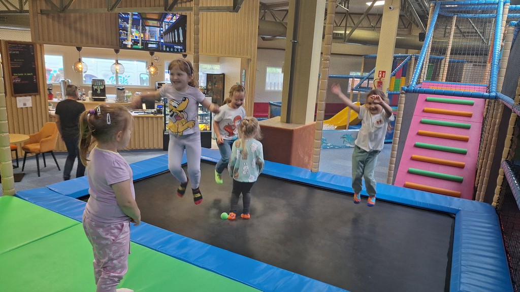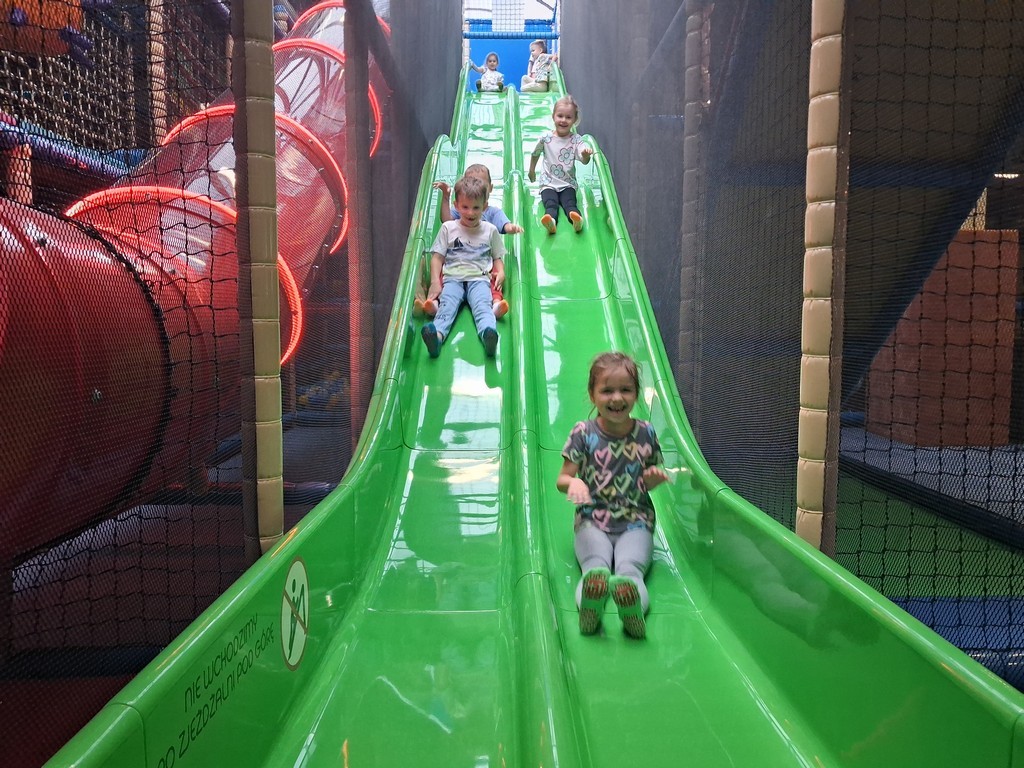 Dzieci bawiły się świetnie, jednocześnie usprawniając motorykę dużą , zwinność oraz koordynację ruchową.