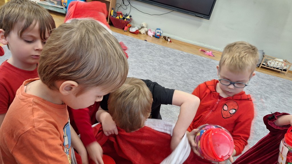 W Mikołajki bawiliśmy się przy piosenkach, słuchaliśmy bajek i opowiadań tematycznie związanych z tym dniem. Znaleźliśmy na choince list od Mikołaja w którym były zadania do wykonania, a na koniec w nagrodę za ich wykonanie musieliśmy znaleźć ukryte prezenty. Otrzymaliśmy trzy rodzaje klocków oraz puzzle za pięknie przystrojoną świątecznie salę.