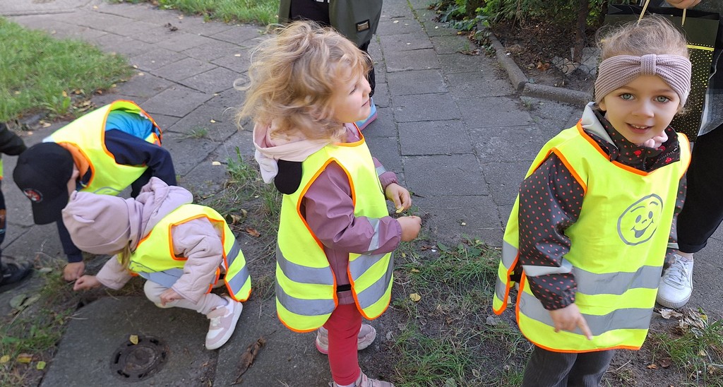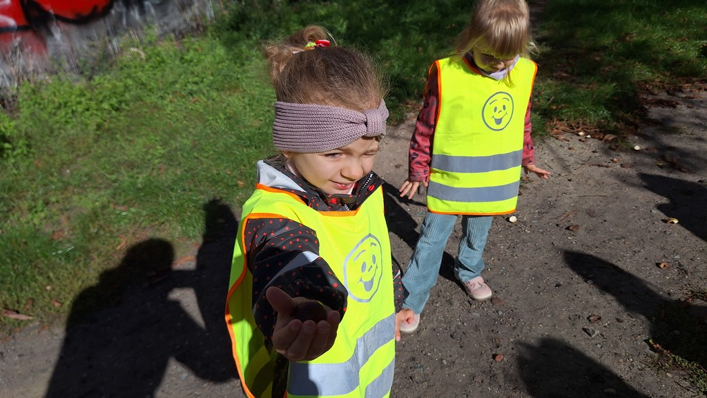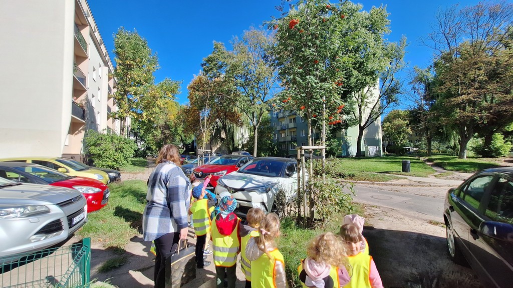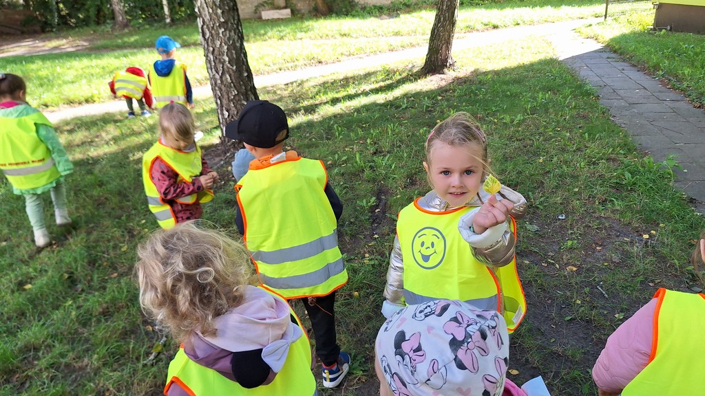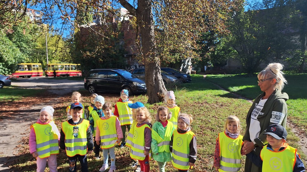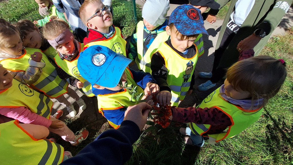 By utrwalić wiedze o skarbach jesieni we wrześniu wybraliśmy się na spacer. Naszym celem był kasztanowiec i zbieranie kasztanów, ale po drodze zaglądaliśmy do ogródków, oglądaliśmy i nazywaliśmy drzewa, zbieraliśmy liście. W tym roku jesień jest niezwykle kolorowa.