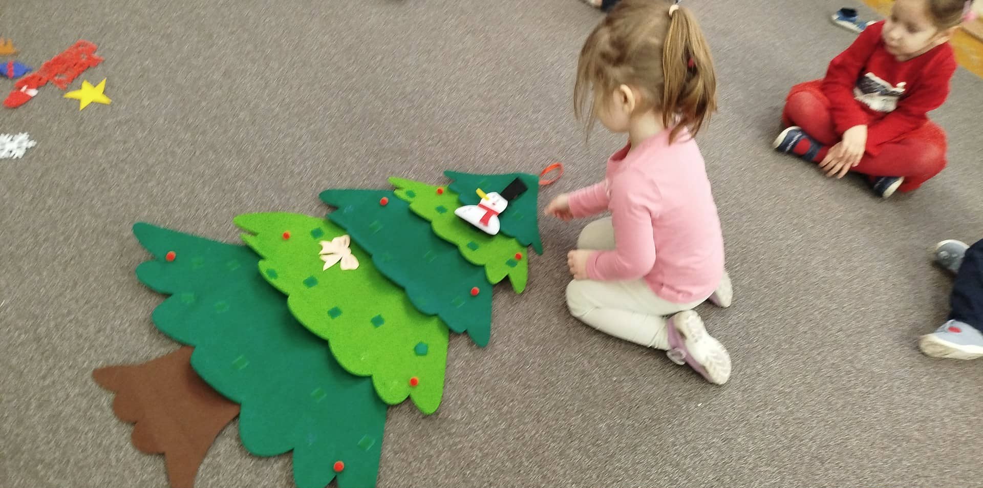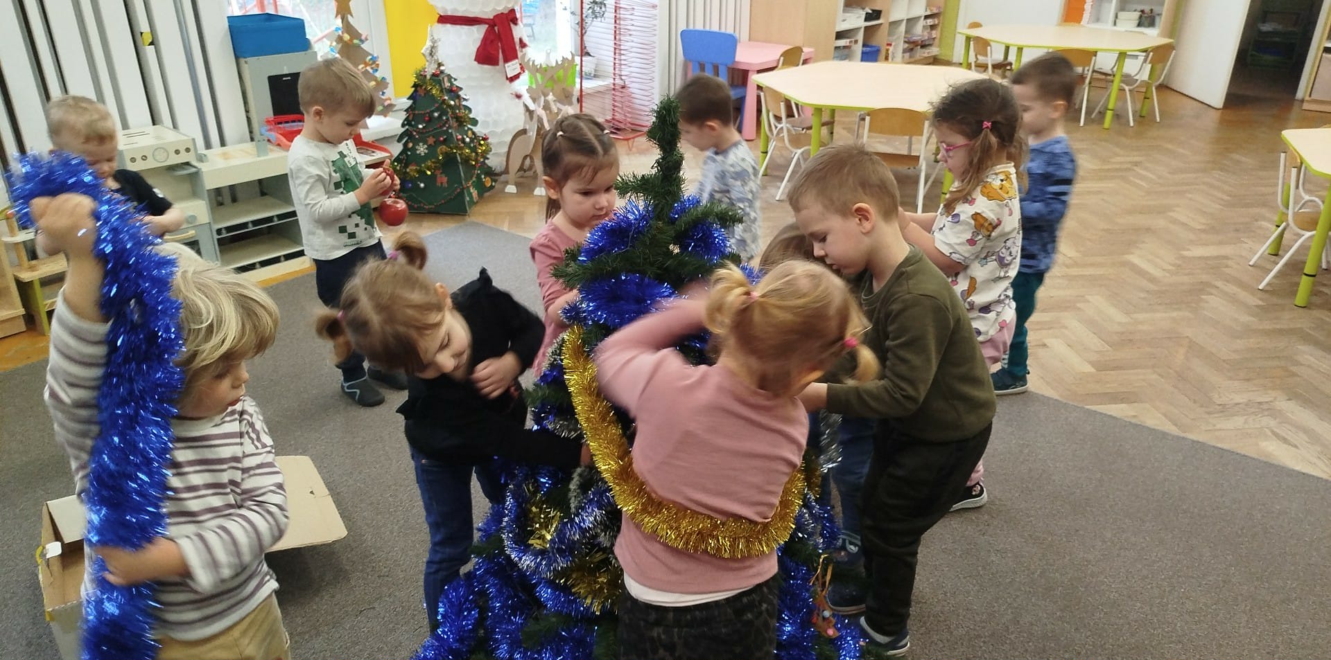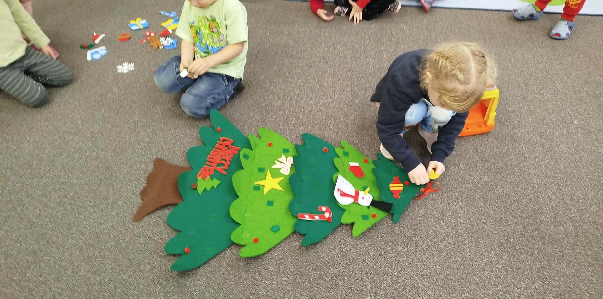 Dzieci ubrały choinki, które pięknie prezentują się w sali i przypominają o zbliżających się Świętach Bożego Narodzenia