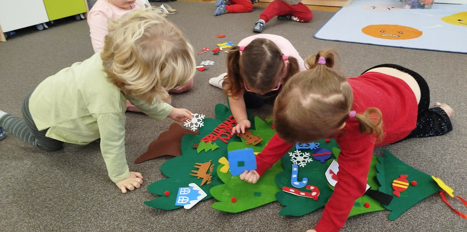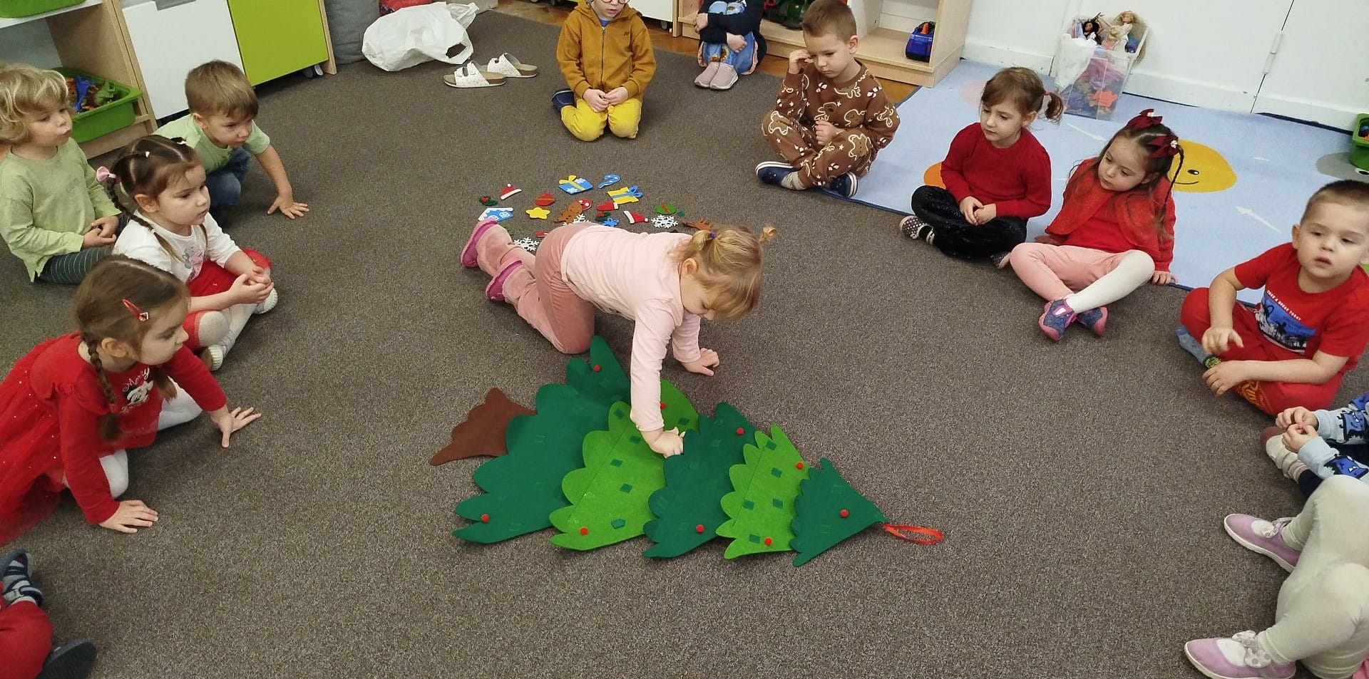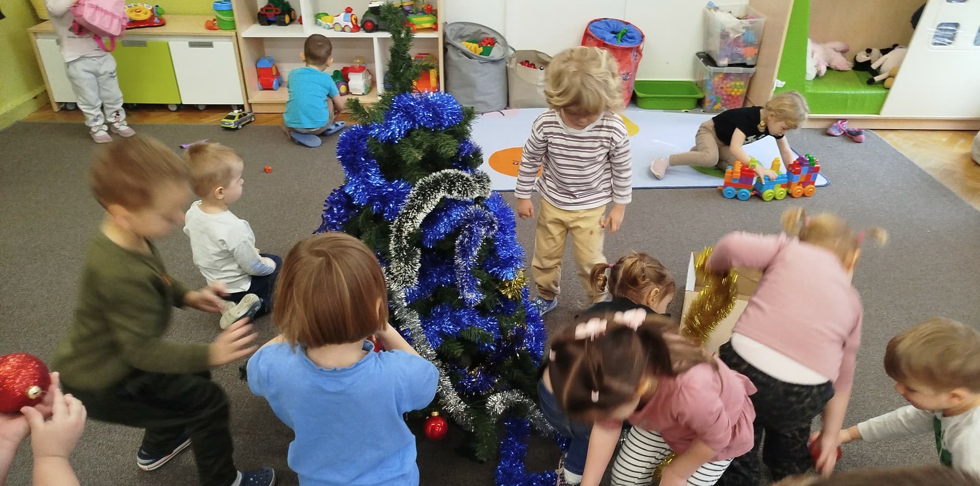 Dzieci ubrały choinki, które pięknie prezentują się w sali i przypominają o zbliżających się Świętach Bożego Narodzenia