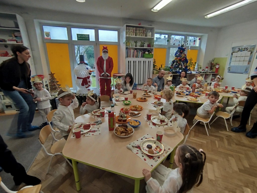 16 grudnia 2025 odbyło się Przedstawienie Świąteczne w wykonaniu dzieci dla swoich Rodziców. W całym przedszkolu panowała radosna, ożywiona atmosfera. Świąteczne dekoracje oraz dzieci w galowych strojach wprowadzały nastrój oczekiwania na wyjątkowe, niecodzienne wydarzenie. Po uroczystości dzieci razem z rodzicami w grupie czekali cierpliwie na przyjście Mikołaja. Wszyscy spędzili miło czas w gronie swoich bliskich.