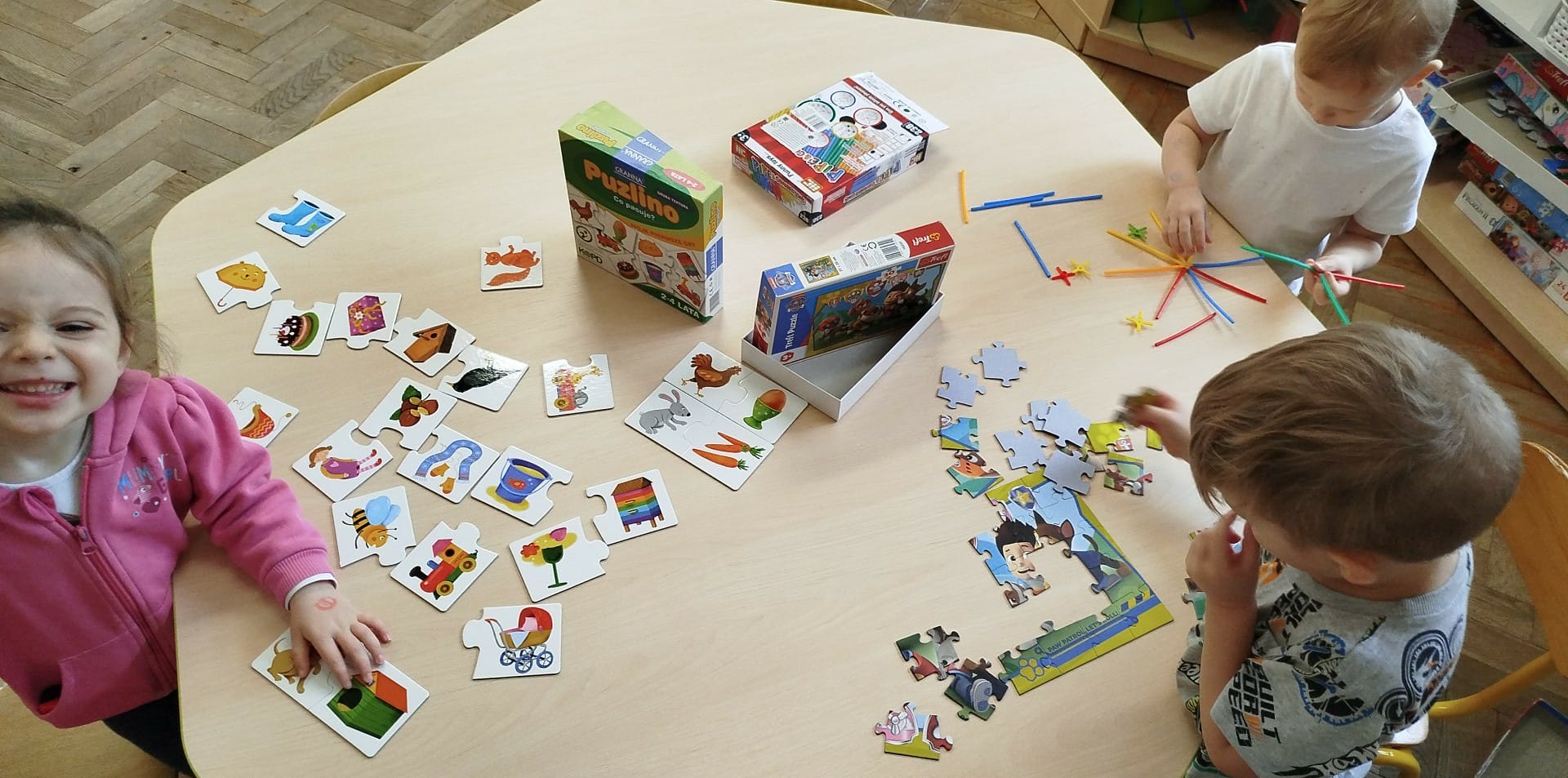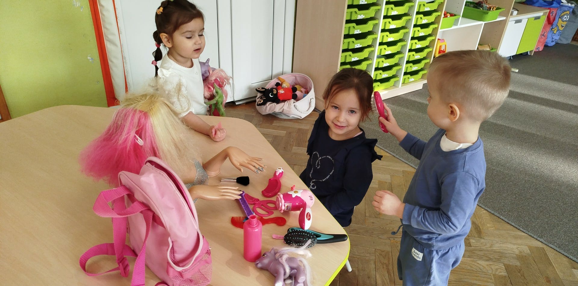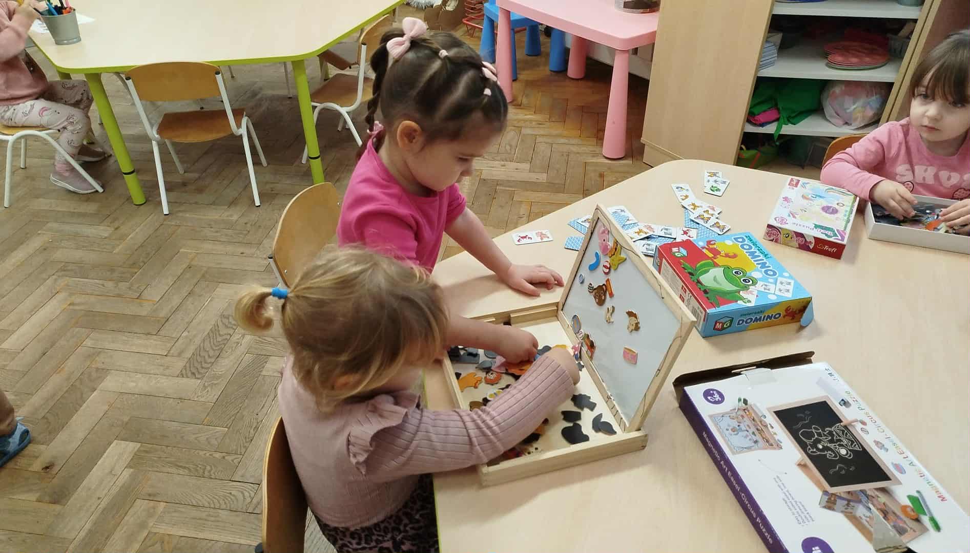 Wspólna zabawa daje dużo radości. W czasie wolnym dzieci mają dużo możliwości zabawy do wyboru według swoich potrzeb i zainteresowań, a wszystko to pod czujnym okiem nauczycielki.