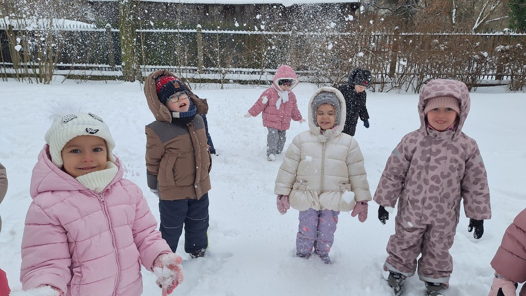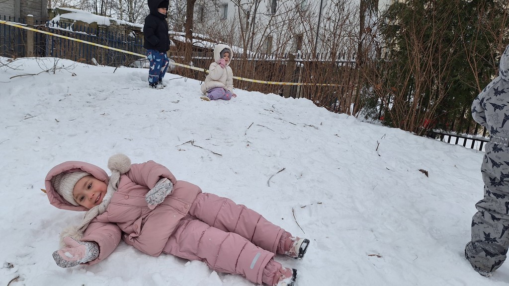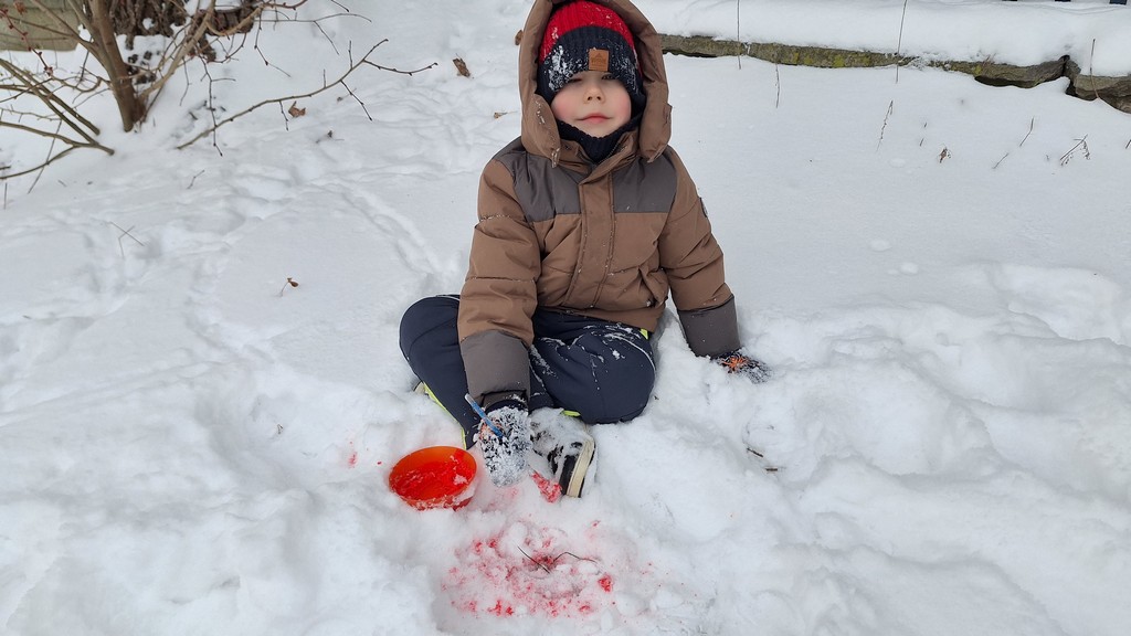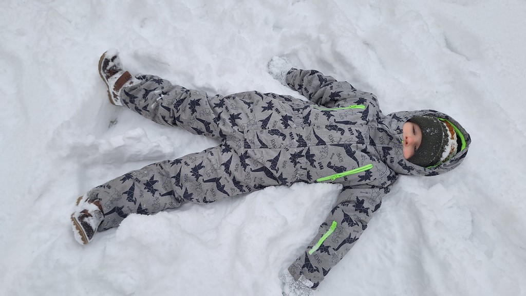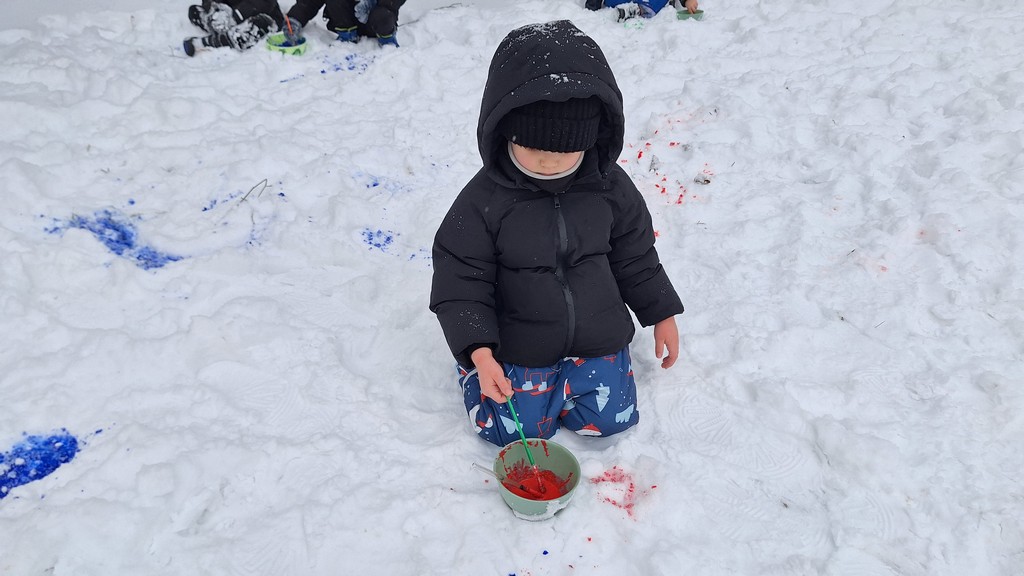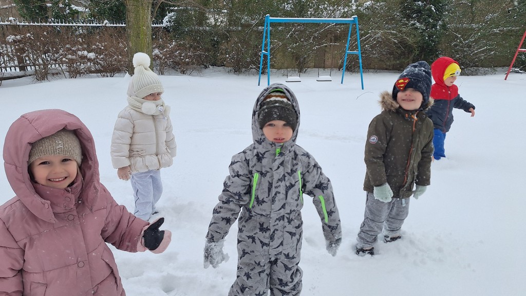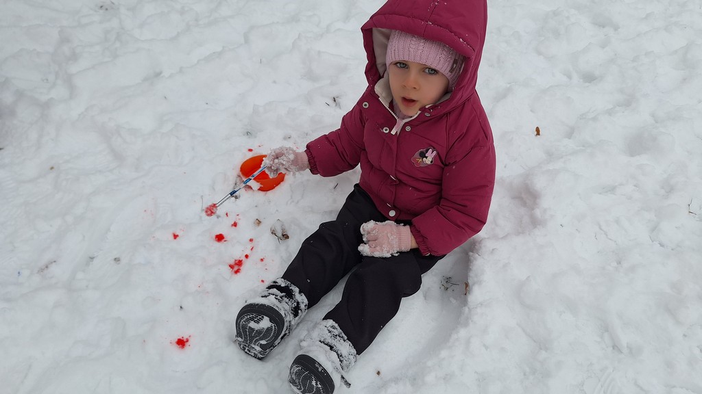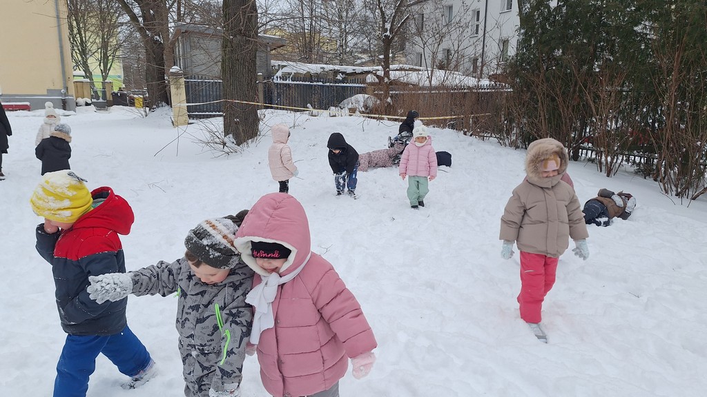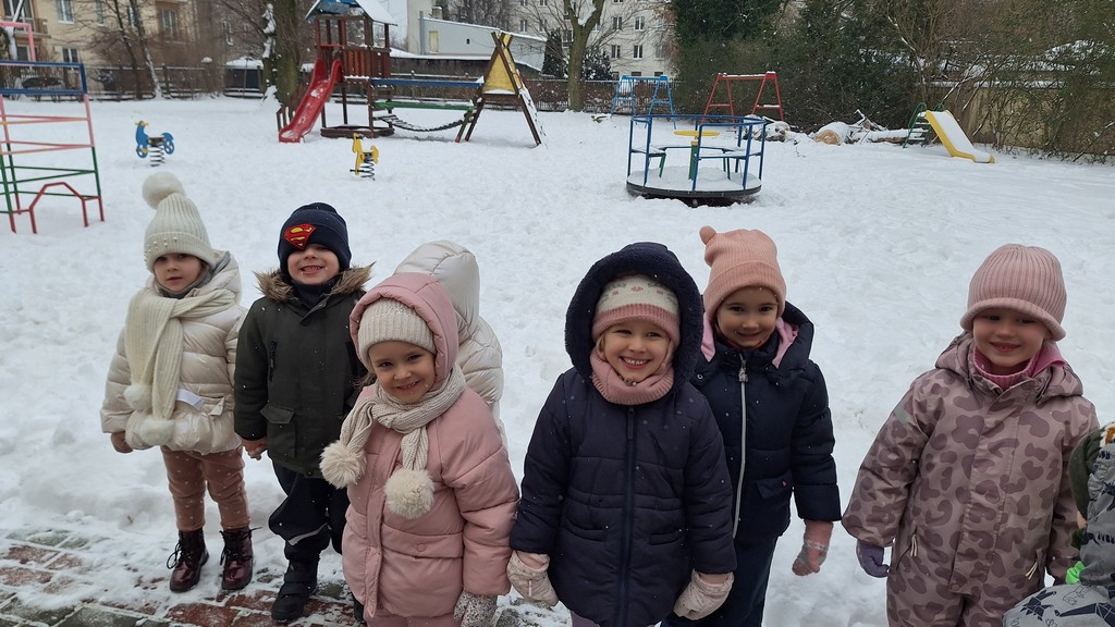 Korzystając z fantastycznej zimowej aury spędziliśmy kilka dni na fantastycznej zabawie w naszym ogrodzie. Tym razem było wyjątkowo biało i zupełnie inaczej niż zawsze. Robiliśmy na śniegu aniołki, traktorki, zajączki. Zbiegaliśmy z górki na pazurki, a nawet turlaliśmy się z górki. Rzucaliśmy się śnieżkami i podrzucaliśmy puszysty śnieg. Było dużo śmiechu i radości. Ostatniego dnia sprzyjającej pogody malowaliśmy śnieg farbami i rozwiązywaliśmy zagadkę czy śnieg jest czysty. Następnym razem zorganizujemy sobie sanki.