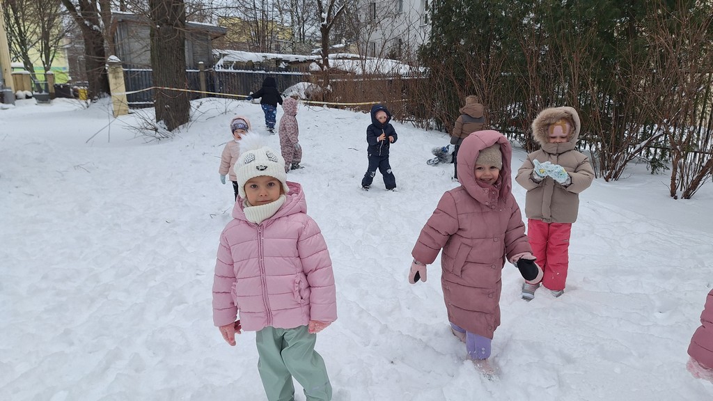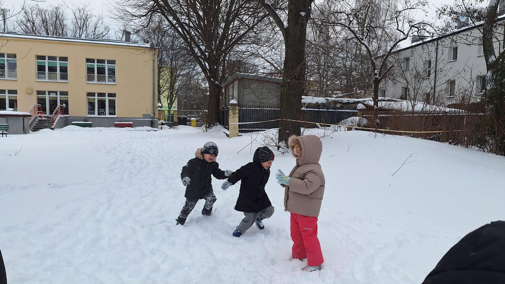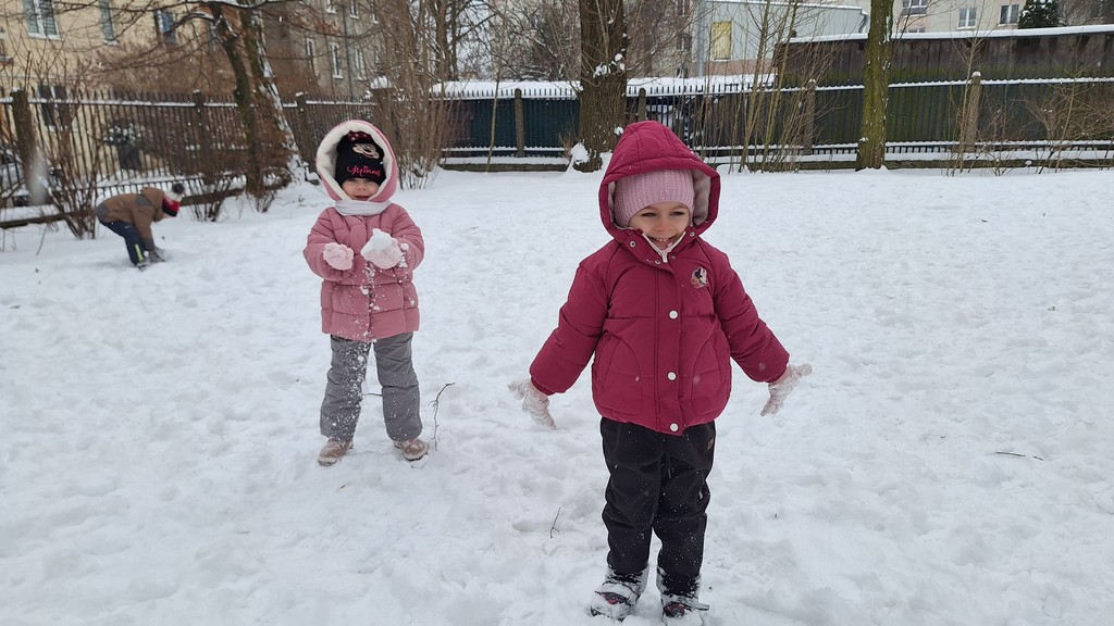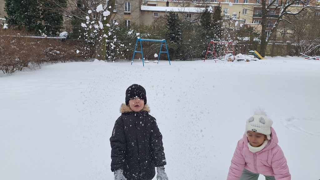Zabawy w ogrodzie pełnym śniegu