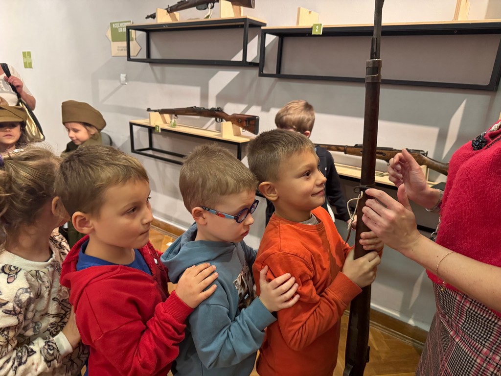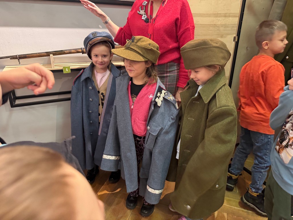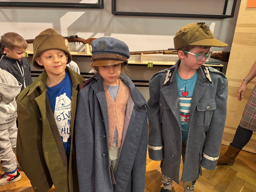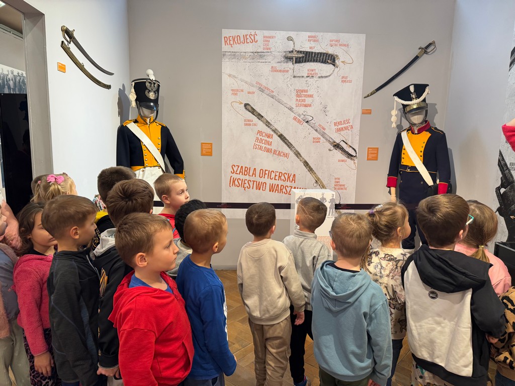 Przy okazji Święta Niepodległości odbyła się wycieczka do Muzeum na warsztaty pt. "Żołnierz, kto to taki...". Dzieci podczas zajęć dowiedziały się kogo możemy nazwać żołnierzem. Obejrzały wystawę, na której poznały wybrane mundury i elementy żołnierskiego ekwipunku. Zajęcia zakończyły się kolorowaniem tematycznych obrazków oraz nauką piosenki żołnierskiej.