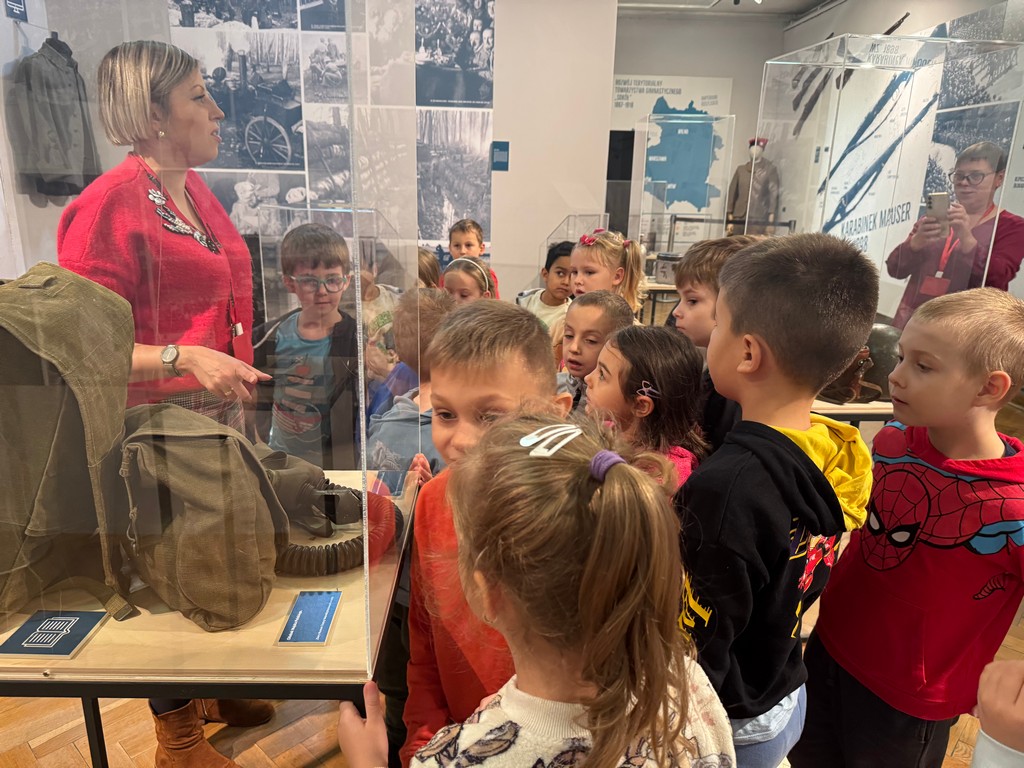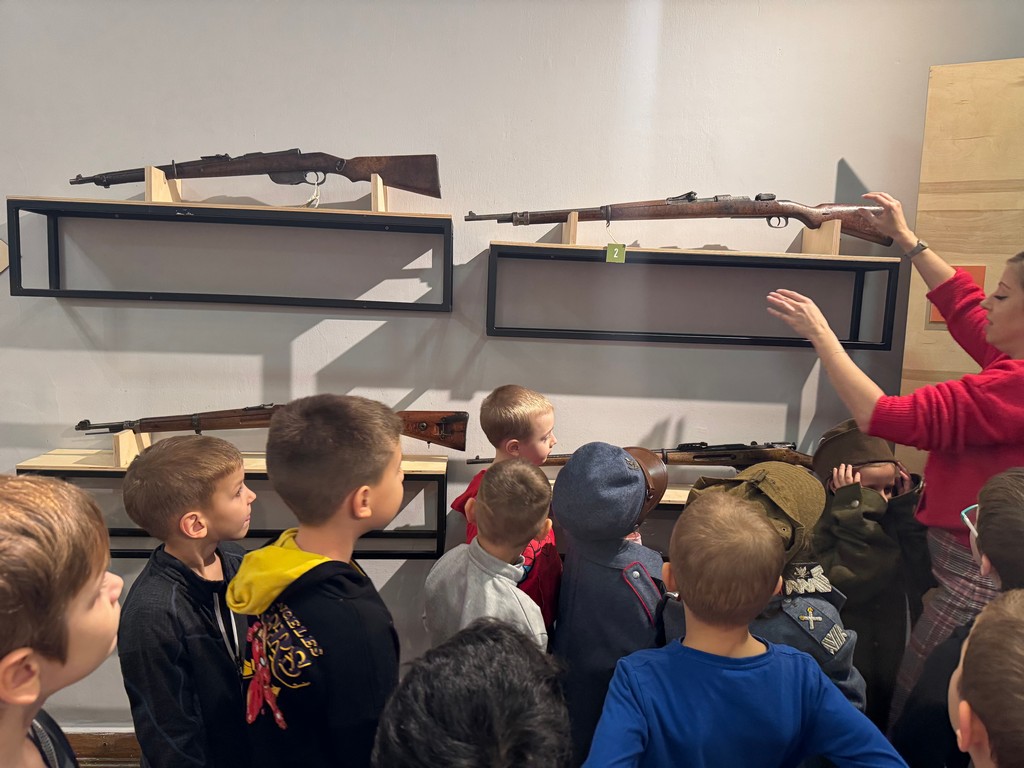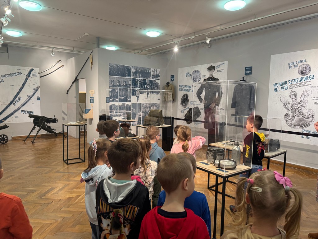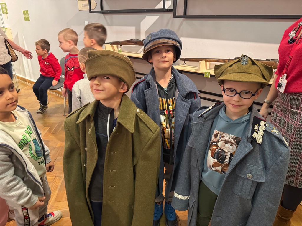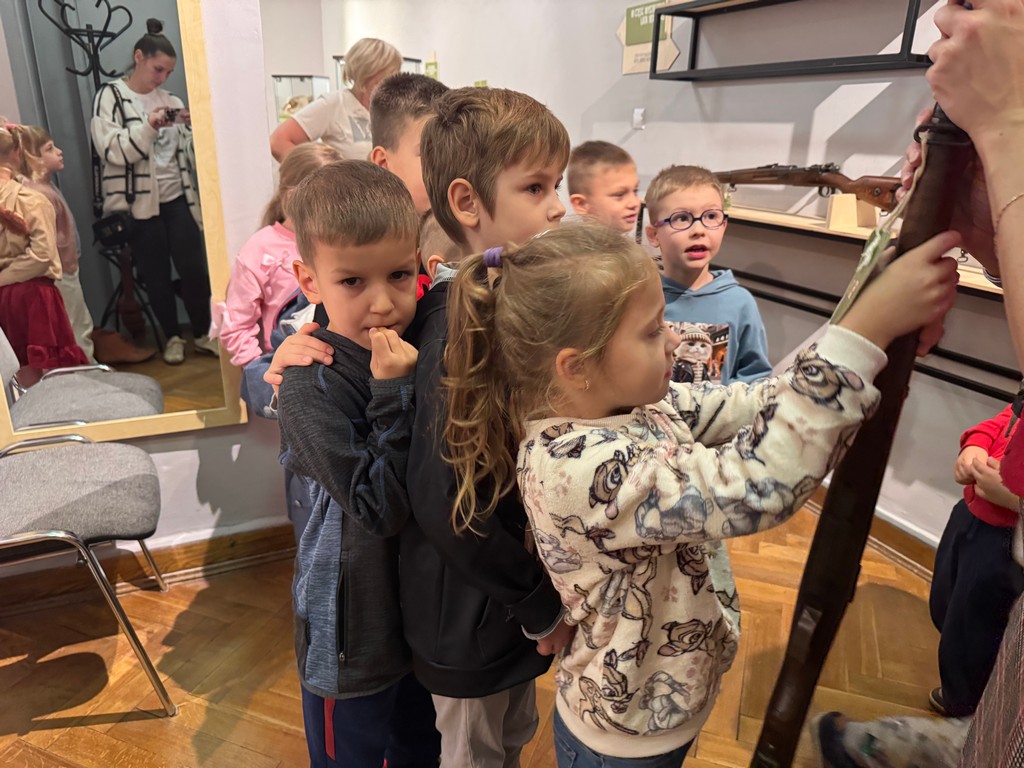 Przy okazji Święta Niepodległości odbyła się wycieczka do Muzeum na warsztaty pt. "Żołnierz, kto to taki...". Dzieci podczas zajęć dowiedziały się kogo możemy nazwać żołnierzem. Obejrzały wystawę, na której poznały wybrane mundury i elementy żołnierskiego ekwipunku. Zajęcia zakończyły się kolorowaniem tematycznych obrazków oraz nauką piosenki żołnierskiej.